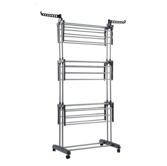 AMOS Clothes Drying Rack 4-Tier Foldable Airer Laundry Drying Stand With Wheels Indoor Outdoor Grey